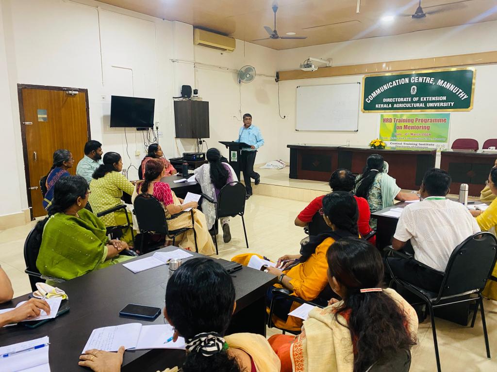 HRD Training on "Mentoring for KAU scientists was conducted on 2nd March 2024. The programme was inaugurated by Dr. Helen S, Professor & Head,CTI. She gave the welcome speech and introduced the resource person, Sri. Rajilan M.C.,DoPT cum IMG trainer. Dr. Mridula N, Assistant Professor, co-ordinated the programme.